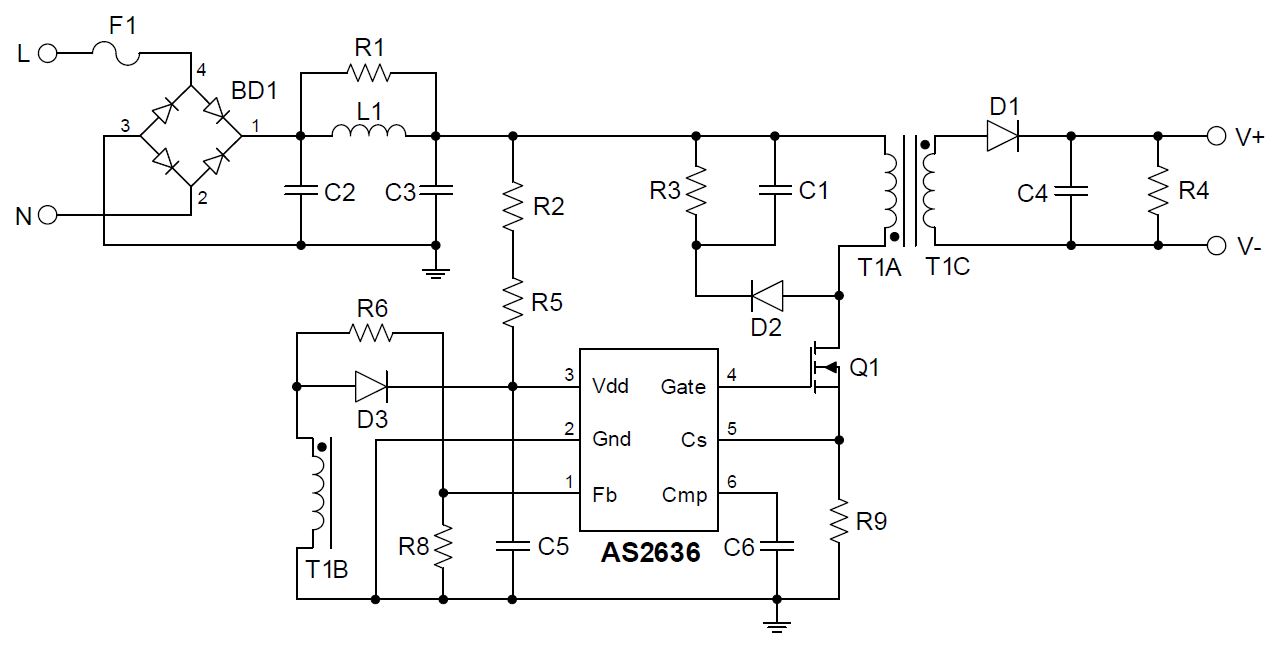 AS2636 提供全面的保護,包括開環(huán)保護、短路保護、逐周期限流、內(nèi)置前緣消隱、VDD欠壓鎖定(UVLO)等。