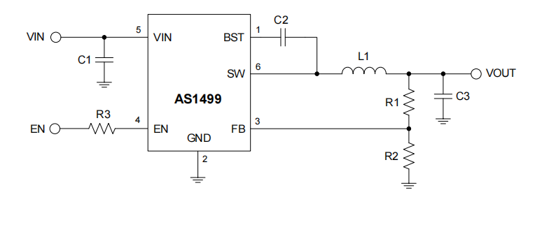 AS1499 是簡單易用的 3A 同步降壓轉換器,輸入電源電壓范圍為 4.5V 至 28V。
