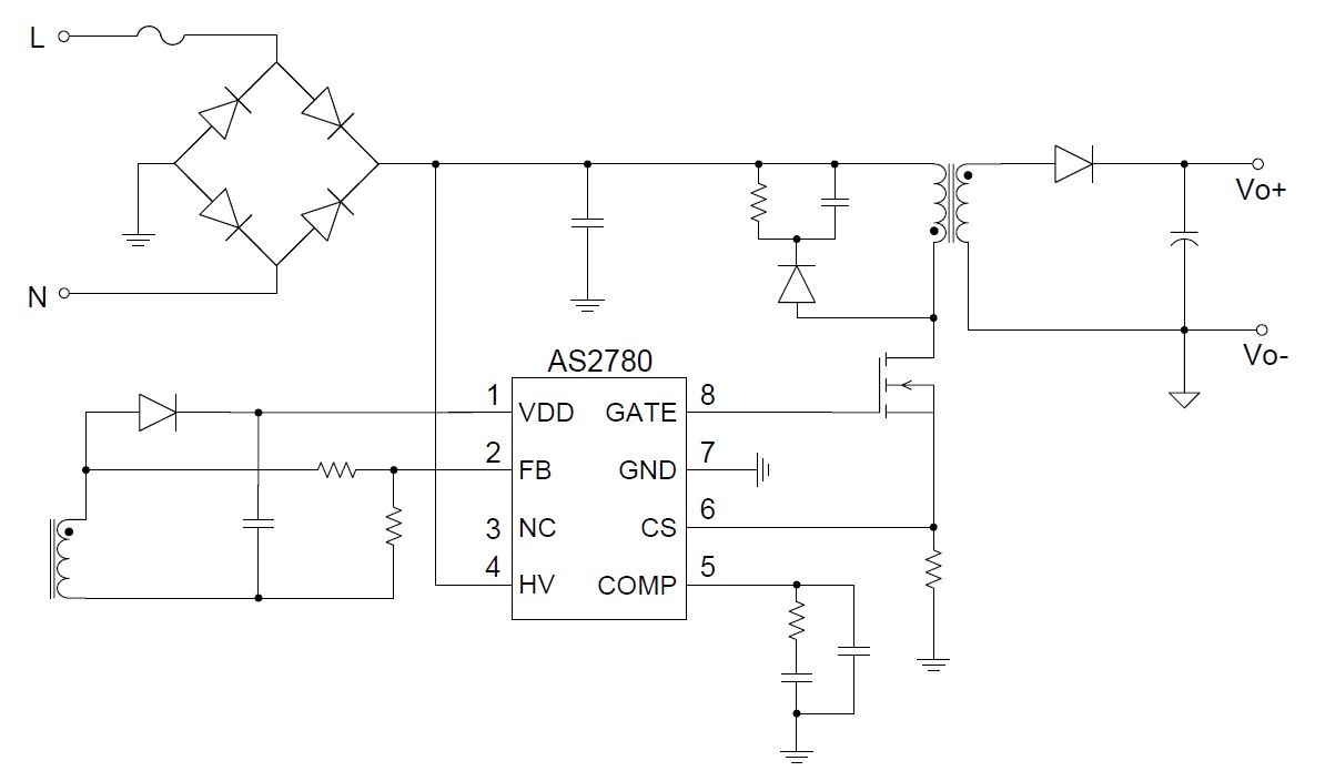 AS2780 單級高PF恒壓芯片, PF>0.95,THD<10%,集成650V高壓啟動,待機功耗小于75毫瓦